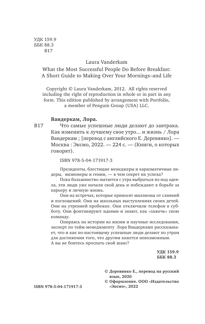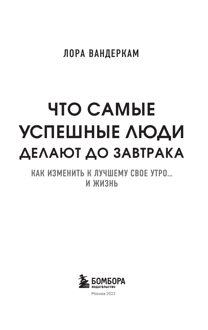 Что самые успешные люди делают до завтрака. Как изменить к лучшему свое утро... и жизнь (Вандеркам Лора); ООО "Издательство "Эксмо", 2022