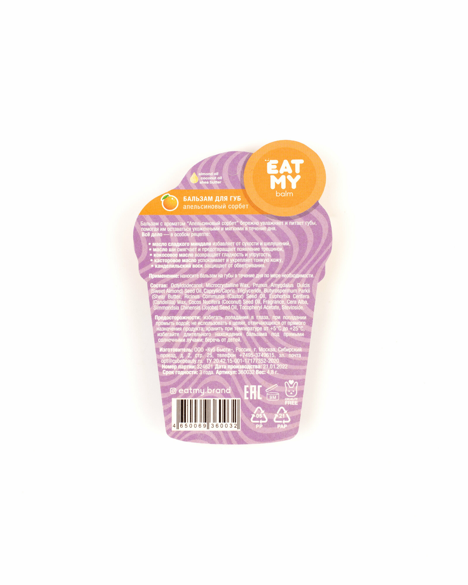 | Полное наименование | Бальзам для губ Eat My Апельсиновый сорбет |