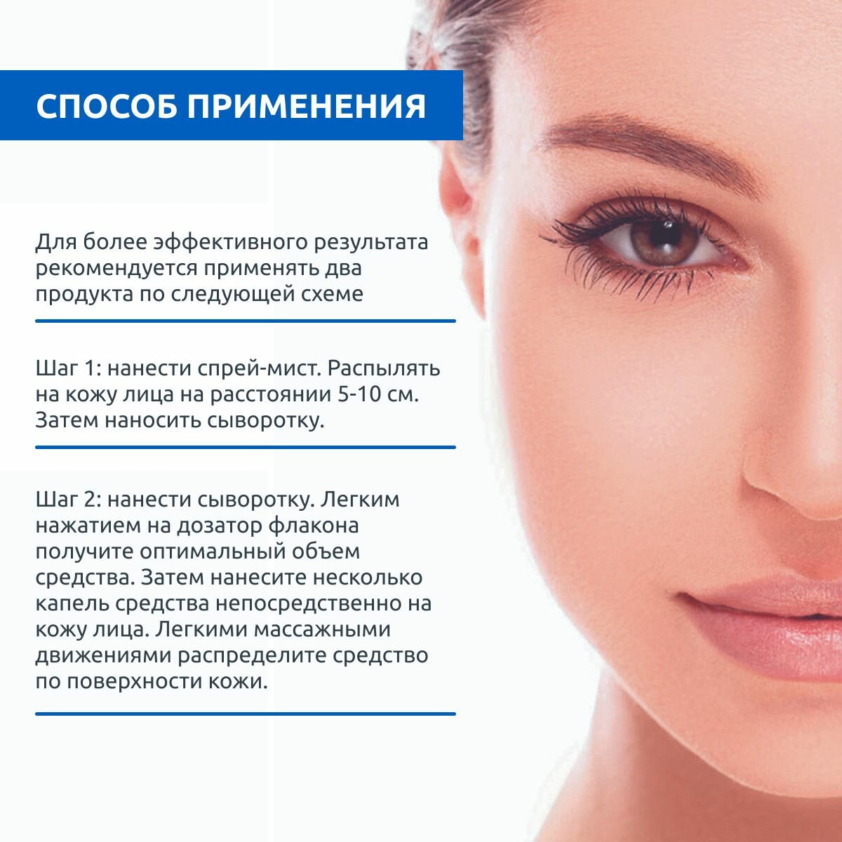 - Шаг 1: нанести спрей-мист. Распылять на кожу лица на расстоянии 5-10 см. Затем наносить сыворотку.