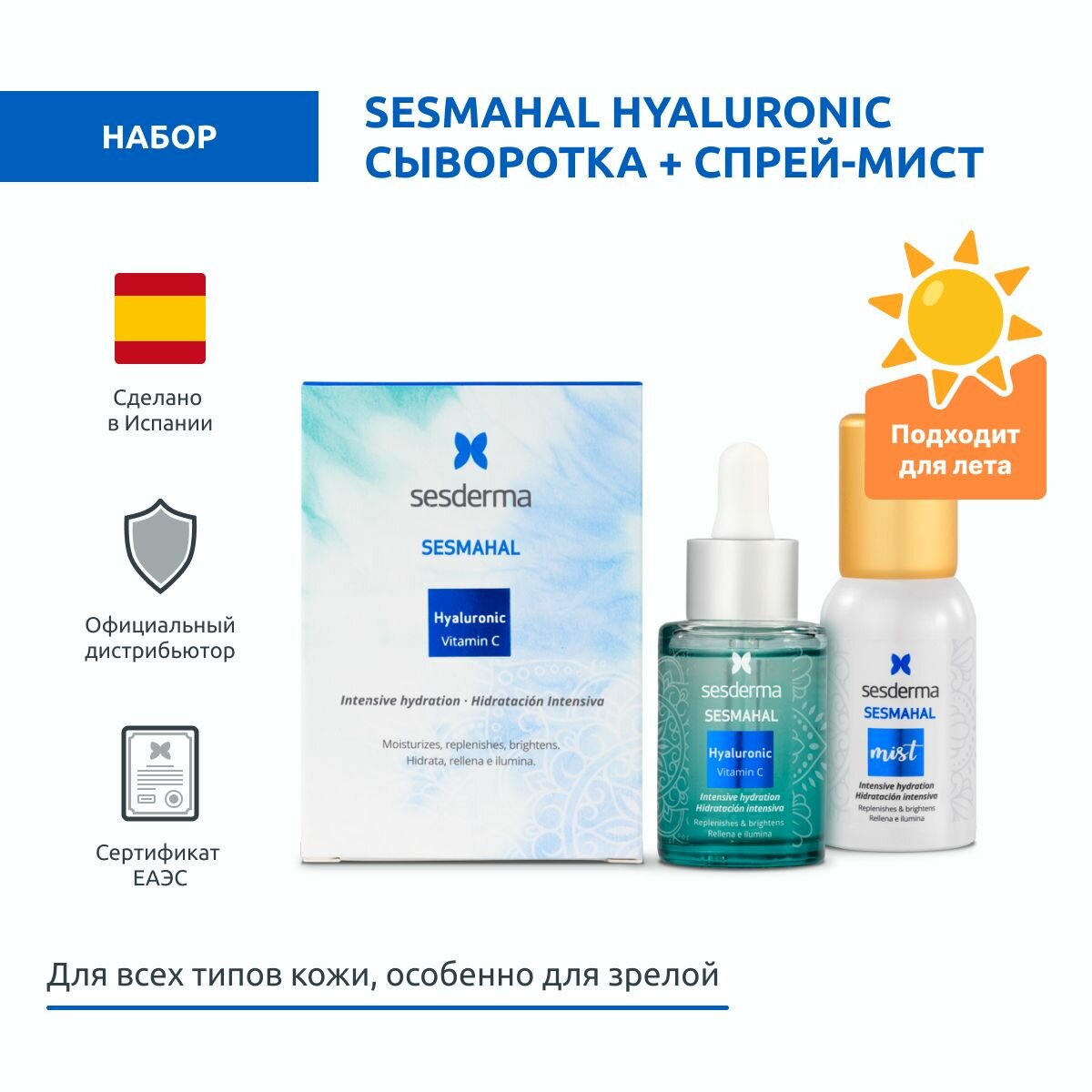 Sesderma Набор увлажняющий Hyaluronic + Vitamin C (сыворотка 30 мл + спрей-мист 30 мл) (Sesderma ) (ЭХ99989431573)