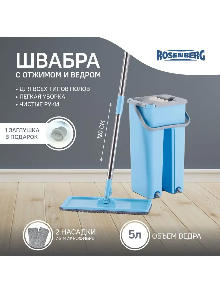 Комплект для уборки: швабра и ведро для отжима. Швабра легко собирается и без труда убирает загрязнения даже в труднодоступных местах. Система самоочистки и отжима превращает уборку в легкое и приятное занятие. В сложенном состоянии занимает минимум места.Материалы: пластик, нержавеющая сталь, микрофибра.КомплектацияЗаглушка - 2 шт;