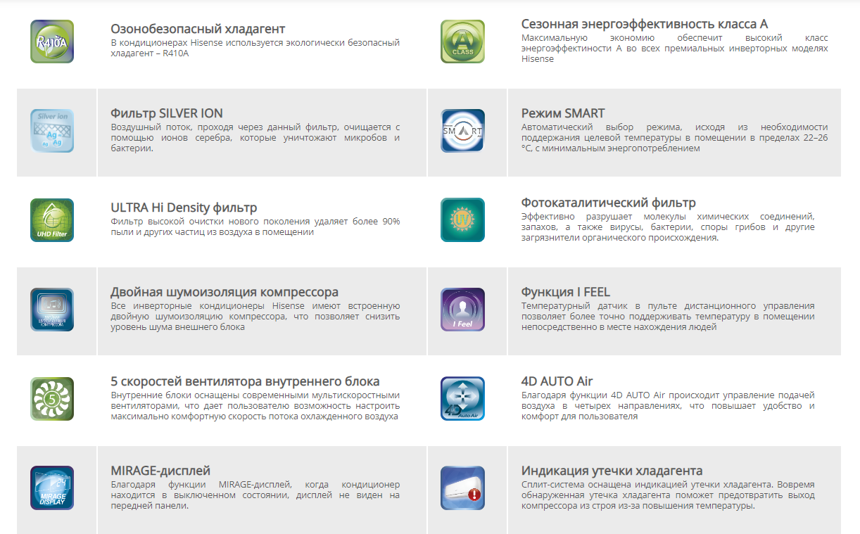 | Основные режимы | охлаждение/обогрев/осушение/вентиляция |