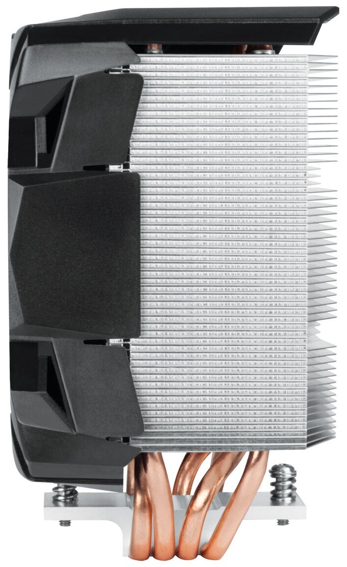Оптимизированная производительность соответствует современному дизайну и бесшумной работе. Благодаря четырем смещенным тепловым трубам однобашенный процессорный кулер обеспечивает быструю передачу тепла в радиатор, где его можно эффективно рассеивать с помощью 120-мм вентилятора.