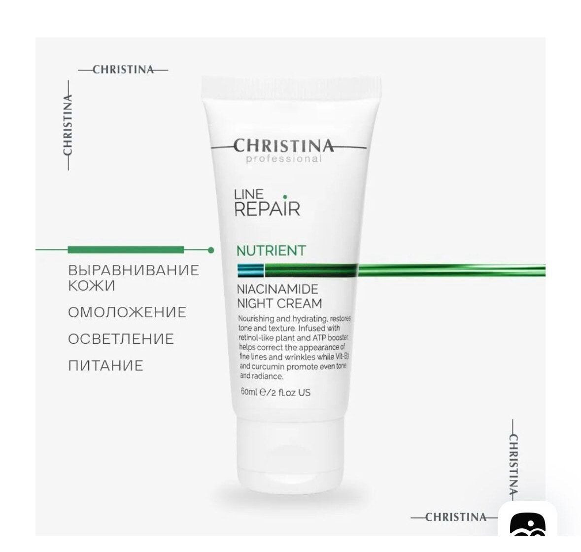 Восстанавливающий ночной крем с ретинолом Christin Line Repair Nutrient Niacinamide Night Cream 60мл Christina