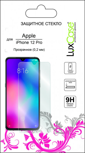 Стекло защитное плоское LuxCase для Apple iPhone 12/12 Pro Прозрачное 033 мм для Apple iPhone 12/12 Pro 0.33mm глянцевое