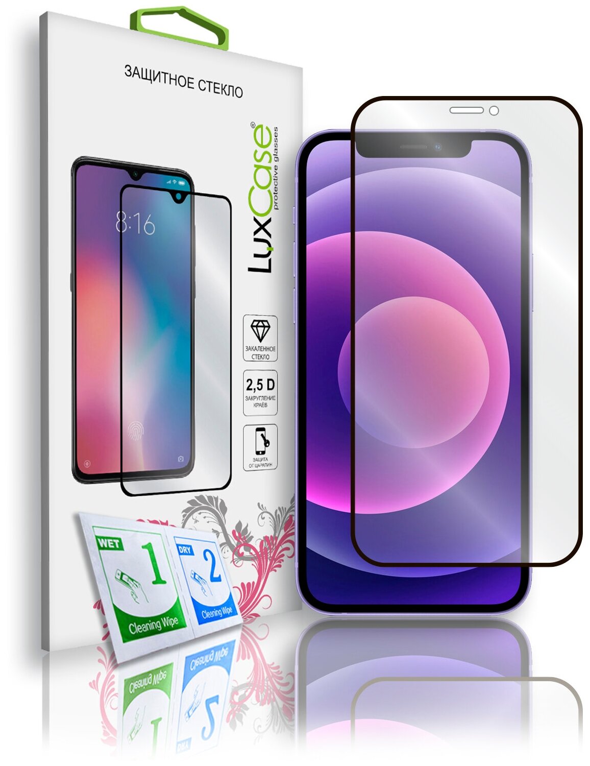 Стекло защитное 2.5D FG LuxCase для Apple iPhone 12/12 Pro Антибликовое 033 мм Чёрная рамка (78585)