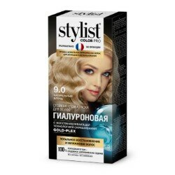 Stylist Color Pro- первая профессиональная стойкая крем-краска для домашнего использования, с рекордным содержанием гиалуроновой кислоты и восстанавливающей технологией окрашивания GOLD-PLEX! Рецептура краски разработана во Франции специалистами в области колористики по самым последним европейским стандартам качества, которая обеспечивает безопасное окрашивание, насыщенный яркий цвет. Максимальная концентрация гиалуроновой кислоты увлажняет, уплотняет и защищает волосы и кожу головы от пересушивания в процессе окрашивания. Активный реконструирующий комплекс GOLD-PLEX, обволакивая каждый волосок, восстанавливает структуру, надежно запечатывает красящие пигменты в структуре волос, продлевая стойкость цвета, миллион золотых частиц усиливают блеск, придают многогранный сияющий перелив оттенка.
