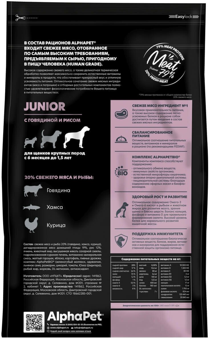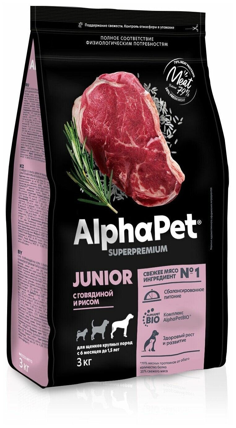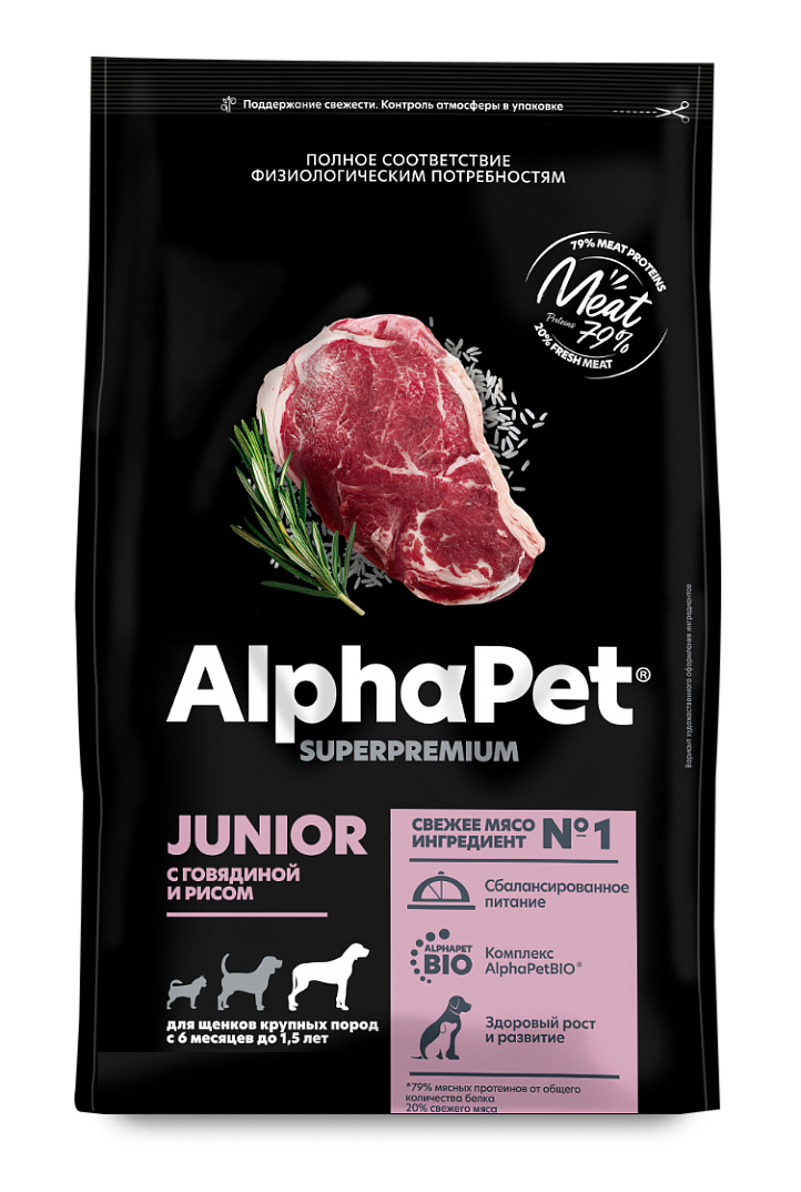 AlphaPet Superpremium сухой корм для щенков крупных пород (Говядина и рис 3 кг.)