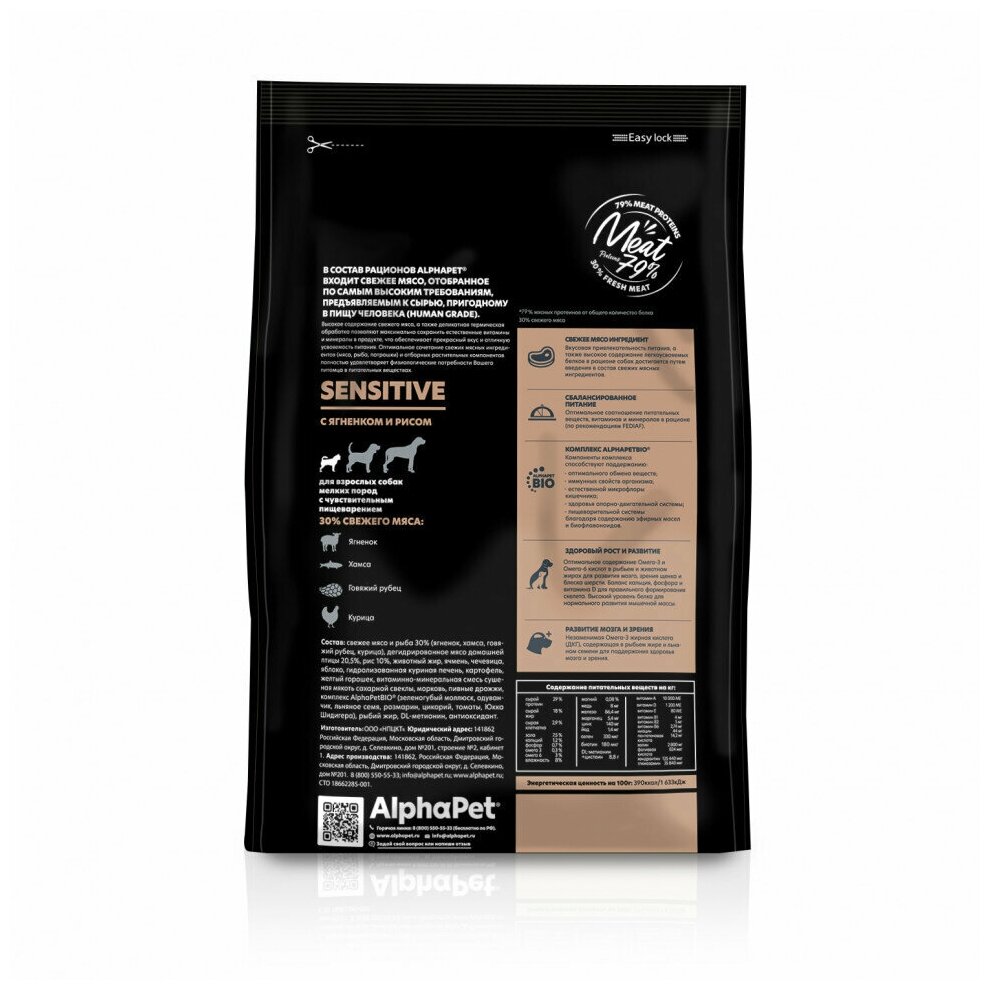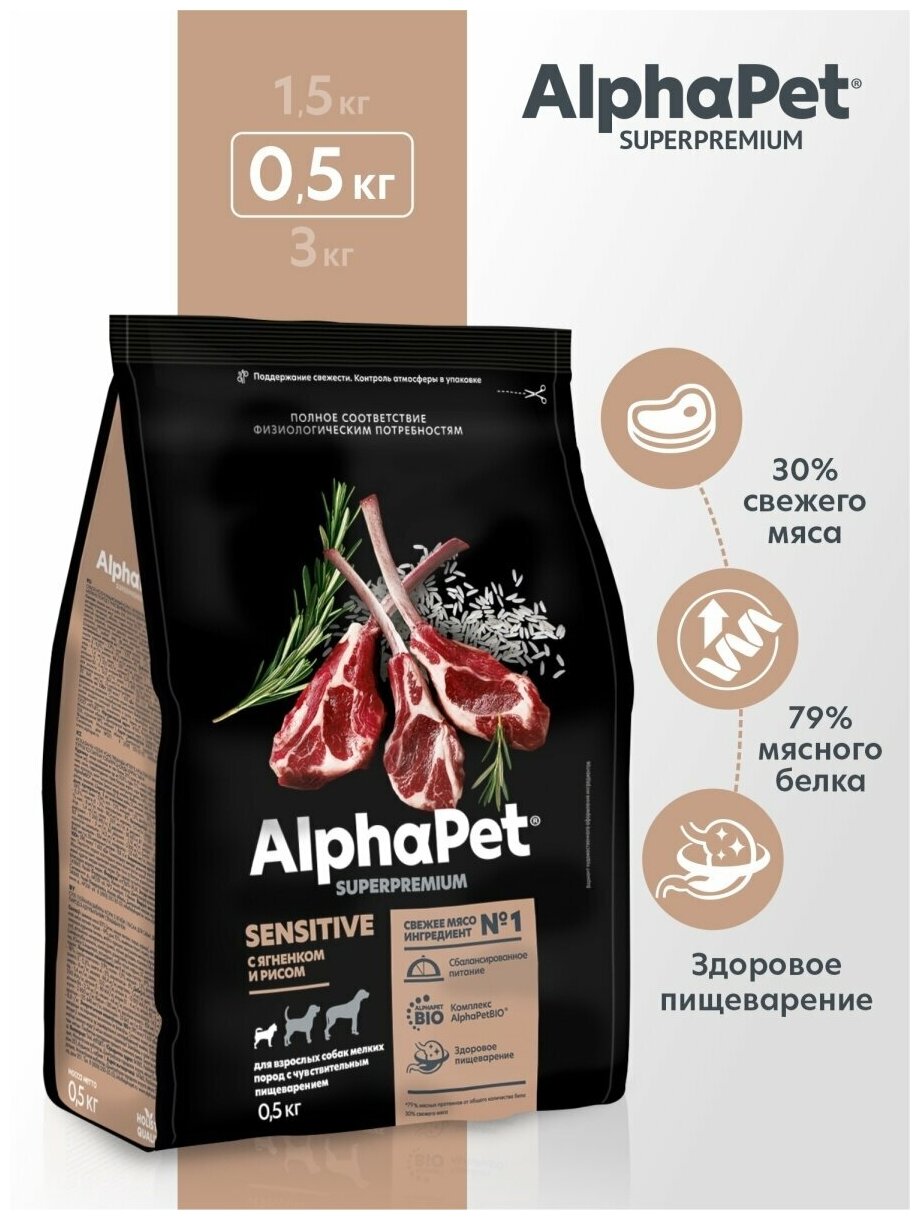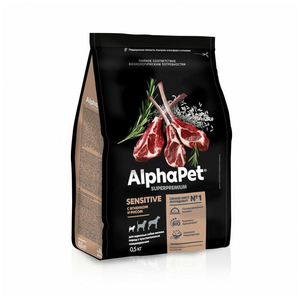 AlphaPet Superpremium сухой корм для взрослых собак мелких пород с чувствительным пищеварением (Ягненок и рис 500 г.)