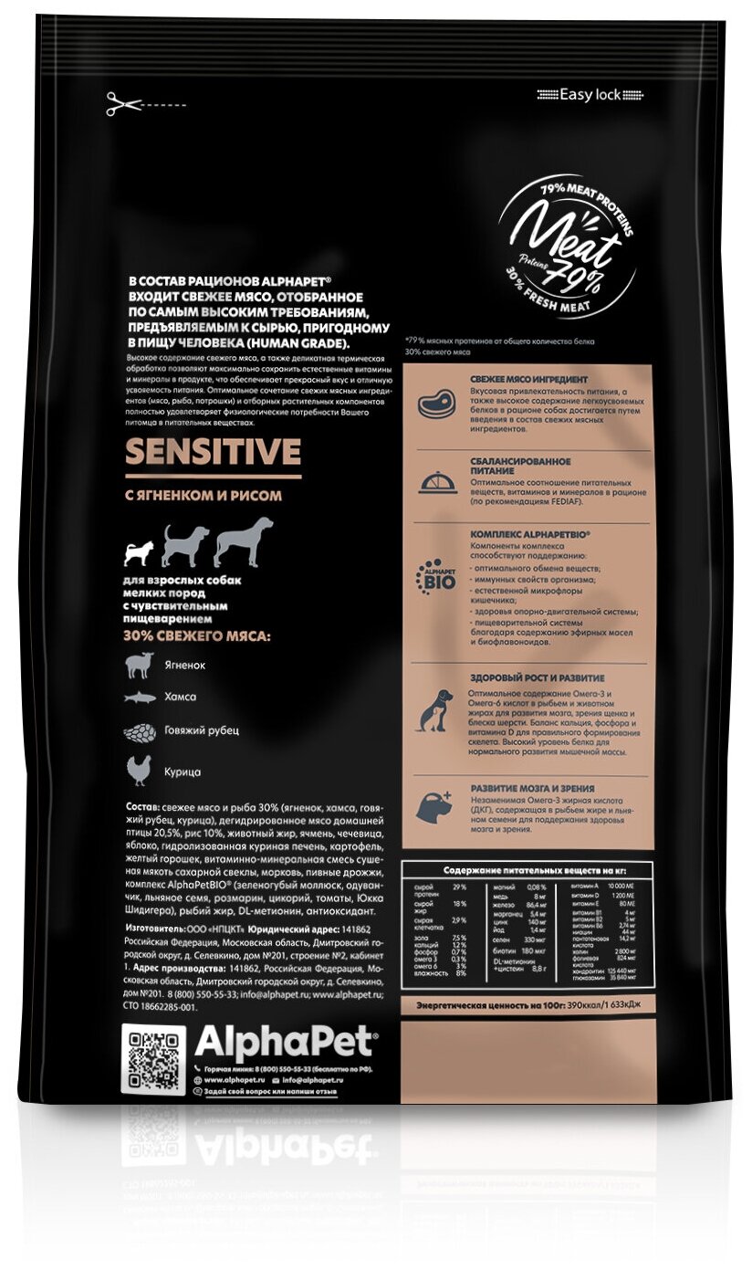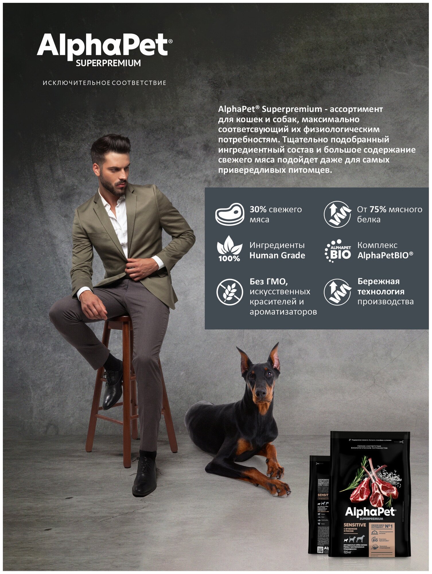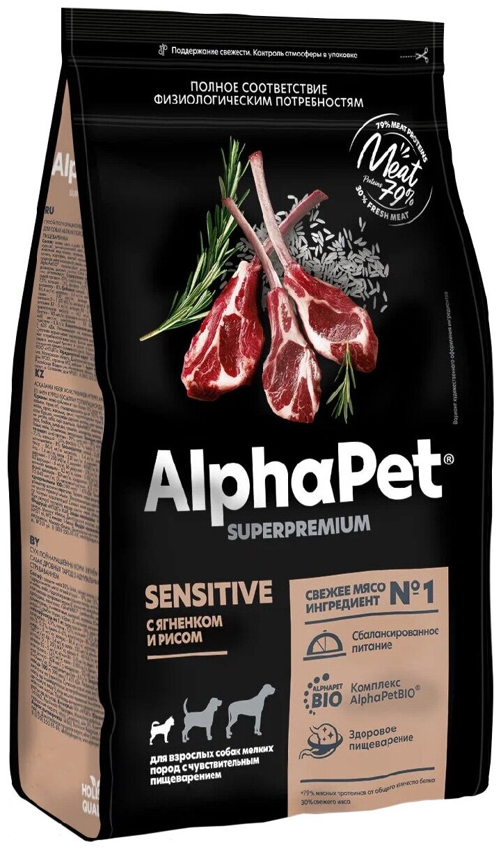 AlphaPet Superpremium сухой корм для взрослых собак мелких пород с чувствительным пищеварением (Ягненок и рис 500 г.)
