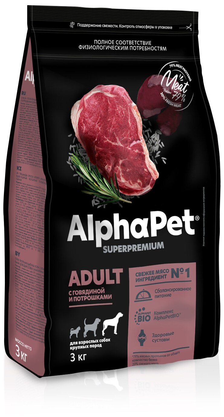 AlphaPet Superpremium сухой корм для взрослых собак крупных пород (Говядина и потрошки 3 кг.)