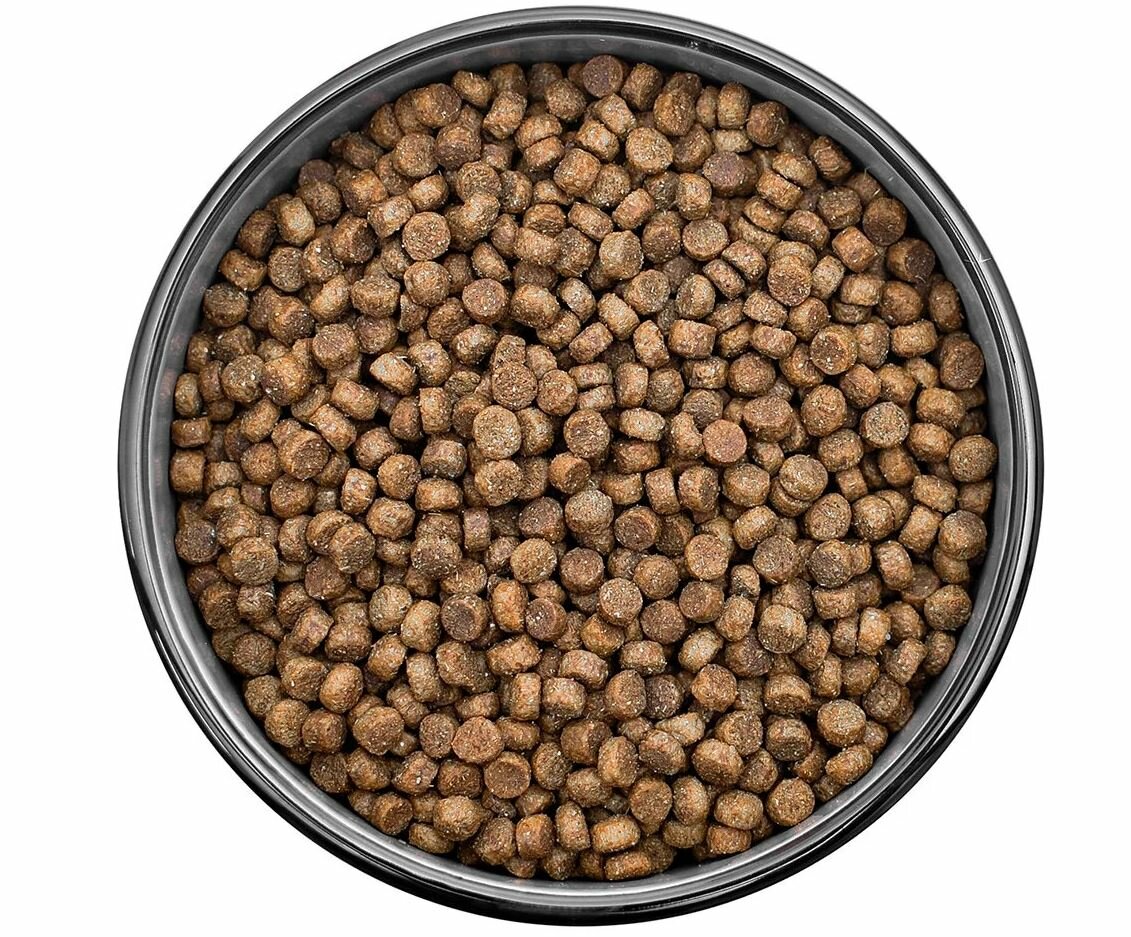 Дегидрированное мясо говядины 30%, ячмень, маис, животный жир, гидролизованные мясо и печень ягнёнка 6%, отруби, масло лососевых пород,
