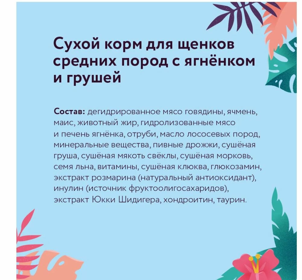 На сегодняшний день товар «Florida сухой корм для для щенков средних пород (Ягненок и груша 3 кг.)» можно купить с кешбеком в 1 магазине: Яндекс.Маркет