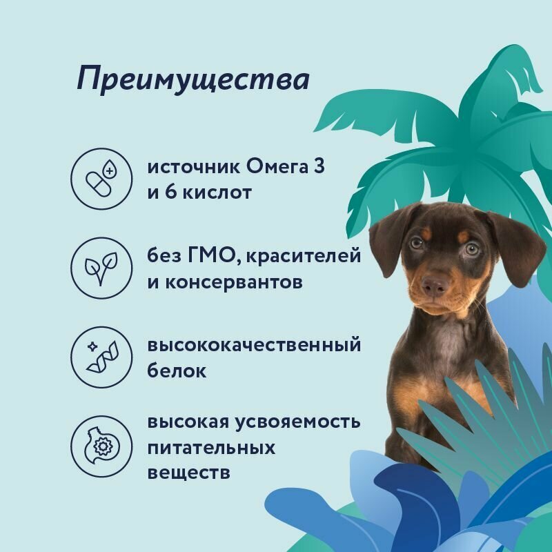 Сбалансированное полнорационное питание, способствующее правильному развитию щенка. В рационе кормов Florida используется только белок животного