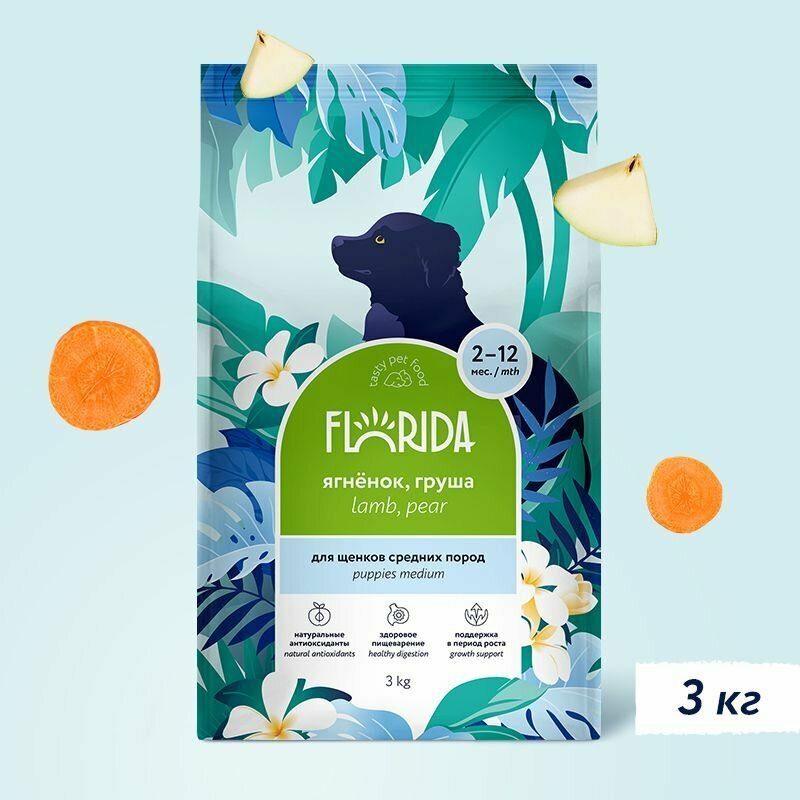 Florida сухой корм для для щенков средних пород (Ягненок и груша 3 кг.)
