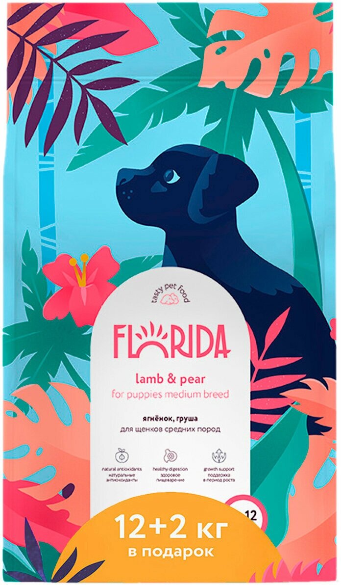 Florida сухой корм для для щенков средних пород (Ягненок и груша 12 + 2 кг.)