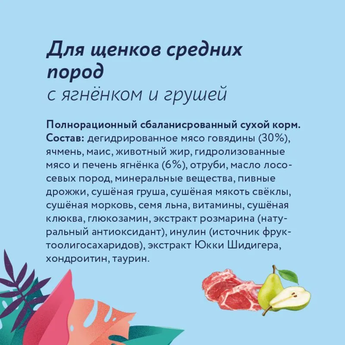 Florida - сухой корм супер-премиум-класса с ягнёнком и грушей для щенков средних пород.