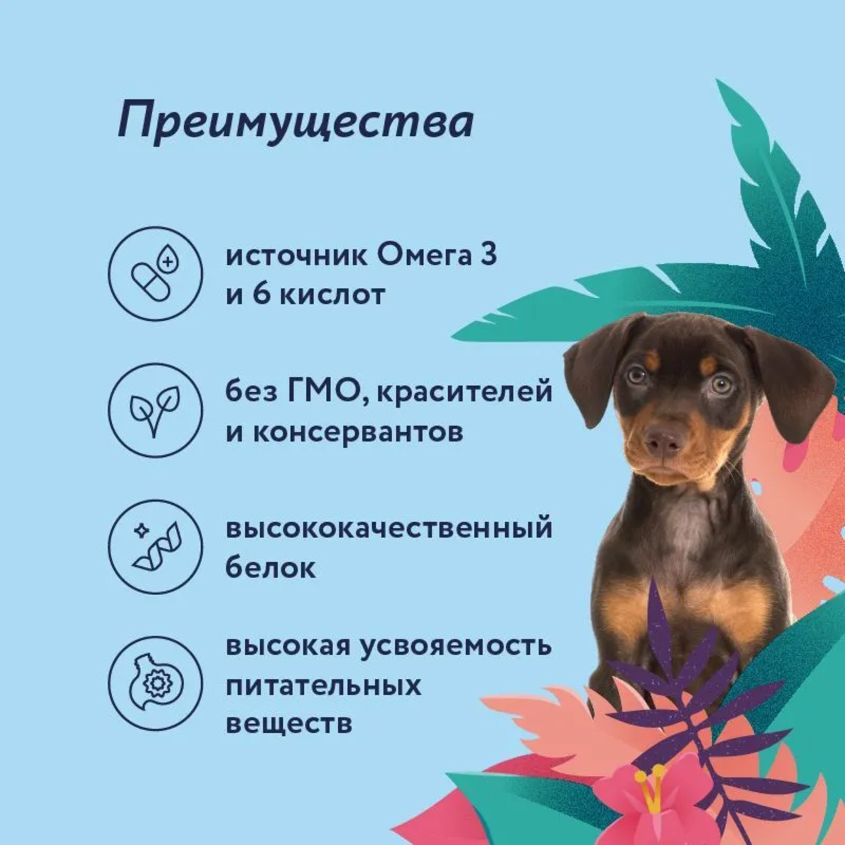 Сбалансированное полнорационное питание, способствующее правильному развитию щенка. В рационе кормов Florida используется только белок животного