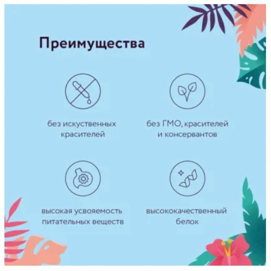 белки 30%, жиры 18%, клетчатка 3%, зола 7%, влажность 9%, цинк 150 мг/кг, железо 100 мг/кг, марганец 40 мг/кг, йод 4 мг/кг, таурин 100 мг/кг, витамин А 20000 МЕ/кг, витамин Д 1200 МЕ/кг, Витамин Е 250 МЕ/кг