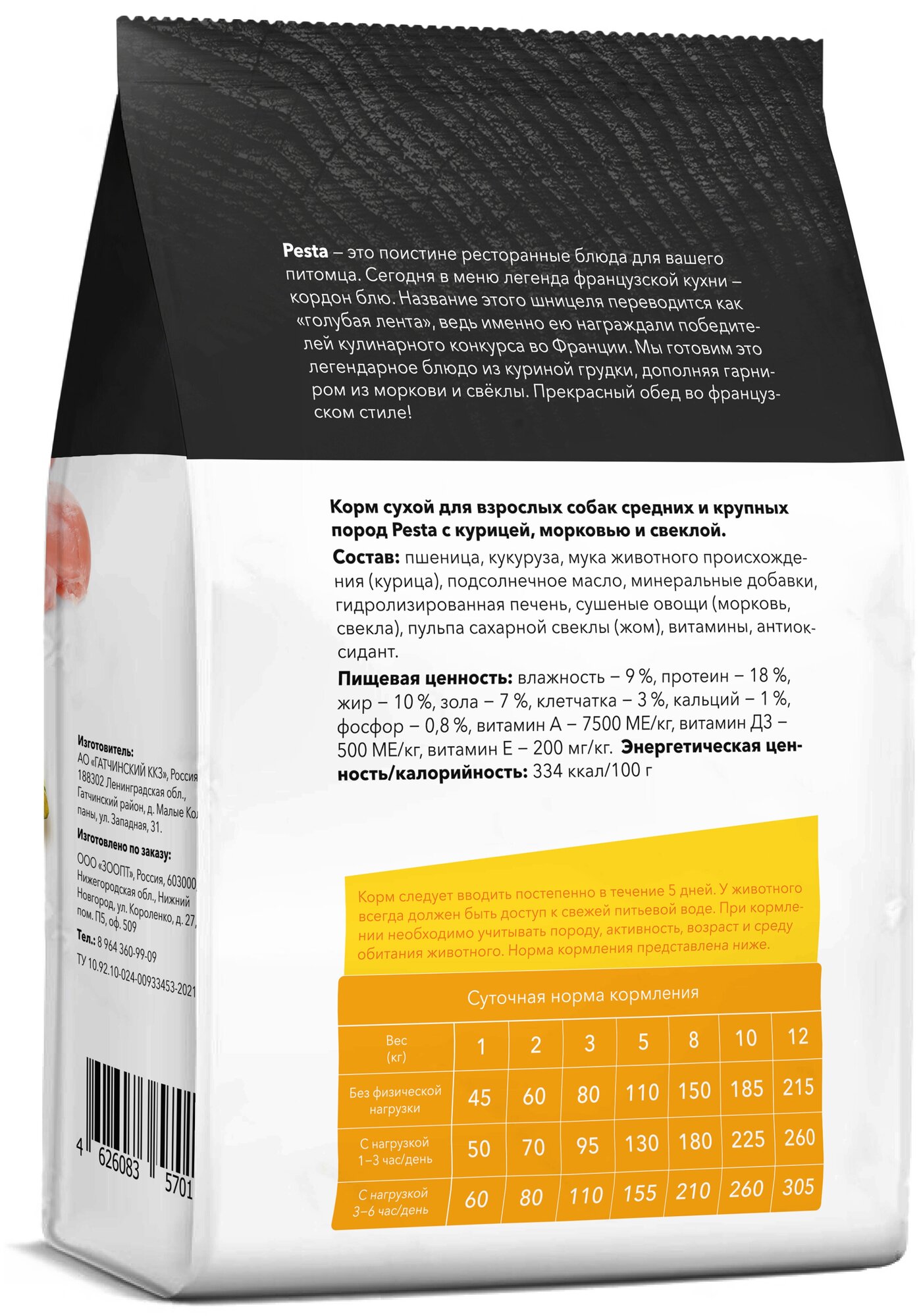 Pesta сухой корм "Кордон блю с курицей морковью и свеклой" для взрослых собак средних и крупных пор (Курица морковь и свекла 18 кг.)