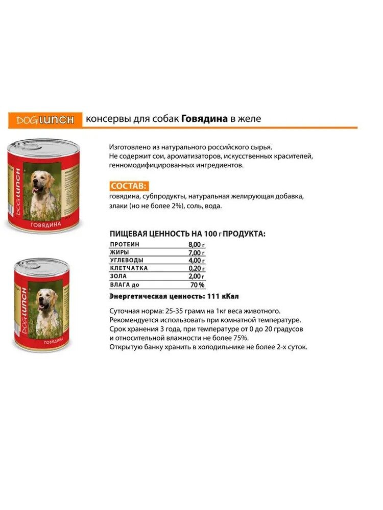 Дог Ланч консервы для собак (Говядина 750 г.)