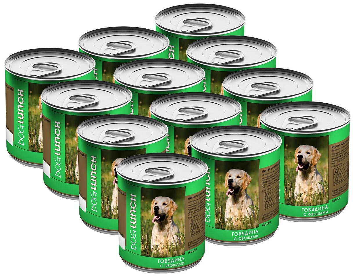 Полнорационный влажный корм Полнорационный влажный корм консервы для собак Говядина с овощами 750г. Dog Lunch – это российский бренд влажных кормов для щенков и взрослых собак1. Общие сведения. Мясные консервы для собак Dog Lunch изготовлены из натурального российского сырья на Наро-Фоминском консервном заводее2. В кормах отсутствует соя, искусственные красители, а также такие малоценные источники белка как мясокостная и перьевая мука, кишки, продукты гидролиза животных белков (дигест).