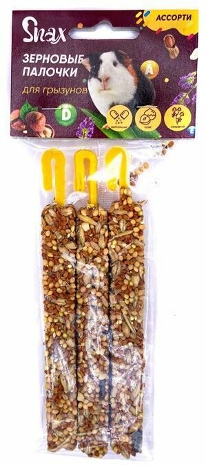 Snax Зерновые палочки для грызунов ассорти (витамины и минералы люцерна орех) (3 шт.) (75 г.)