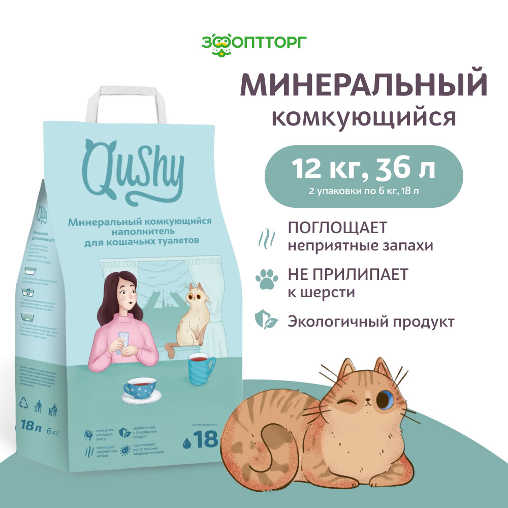 Qushy наполнитель минеральный комкующийся (6 кг. 12 л.)