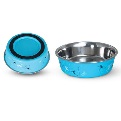 Стильная круглая миска из нержавеющей стали для кошек и собак небольших пород. Она идеально подходит как для воды, так и для корма разной консистенции. Миска комфортна для питомца и легко моется под струей проточной воды с использованием моющих бытовых средств. Прорезиненное основание обеспечивает максимальную устойчивость, препятствуя скольжению изделия во время использования, а оригинальный принт сделает такую миску украшением любого интерьера.
