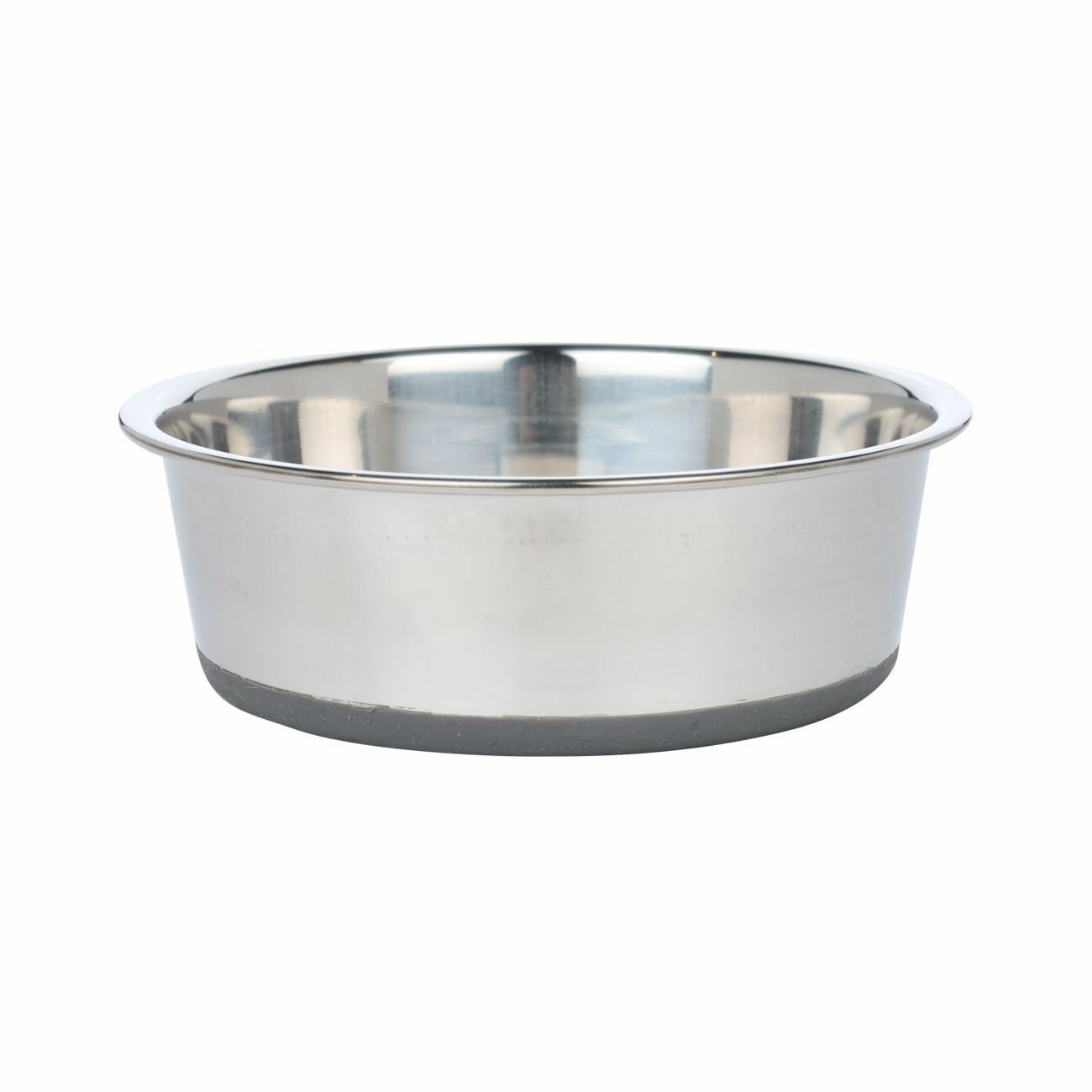 Миска металлическая на черной силиконовой подставке с присоской. Миска предназначена для сухого и влажного корма, а так же лакомств или воды. Объем миски позволит вместить всю порцию одного кормления даже для очень крупной собаки!Изготовлена из прочной нержавеющей стали, устойчива к механическим воздействиям и ржавчине.Силиконовая подставка позволяет изделию не скользить по поверхности пола, тем самым предотвращая появление царапин на покрытии. Так же подставка очень надежно фиксирует миску на месте с помощью присоски, что удобно при поедании животными корма.Материалы: нержавеющая сталь, силикон.Объем: 2,8 л.