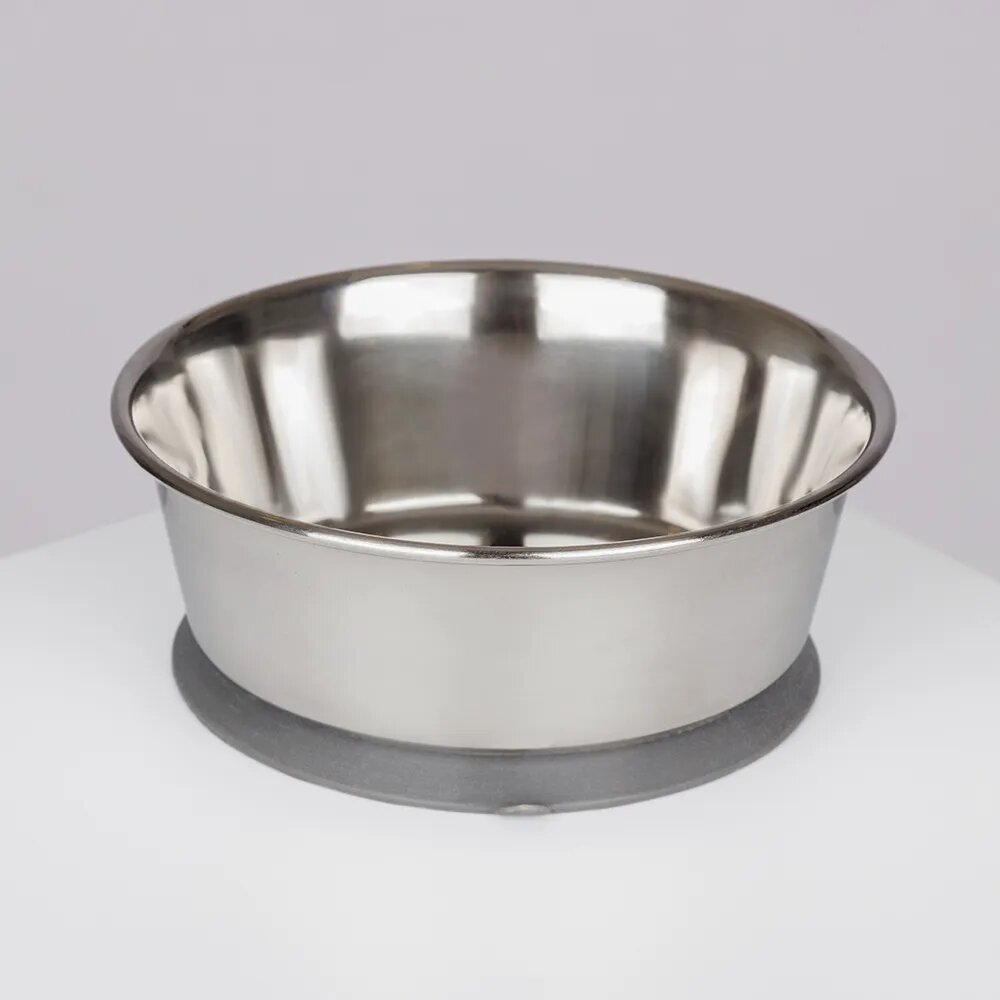 56095 - 0,9лМиска для домашних животных металлическая утяжеленная на силиконовой подставке с присоской от HOMEPET. Миска предназначена для сухого и влажного корма, а так же лакомств или воды. Изготовлена из прочной, утяжеленной, нержавеющей стали, устойчива к механическим воздействиям и ржавчине.Силиконовая подставка позволяет изделию не скользить по поверхности пола, тем самым предотвращая появление царапин на покрытии, так же подставка очень надежно фиксирует миску на месте с помощью присоски, что удобно при поедании животными корма.