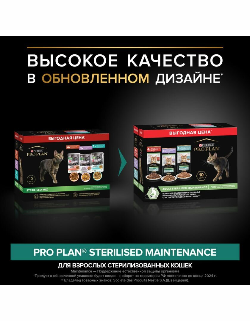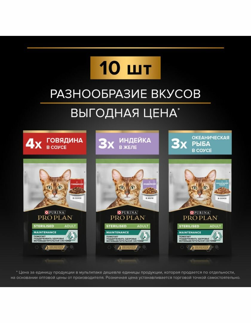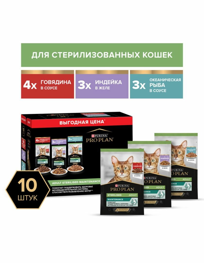 Pro Plan Nutrisavour Sterilised набор паучей для стерилизованных кошек и котов (Говядина индейка треска 85 г. (10 шт.)) Purina Pro Plan