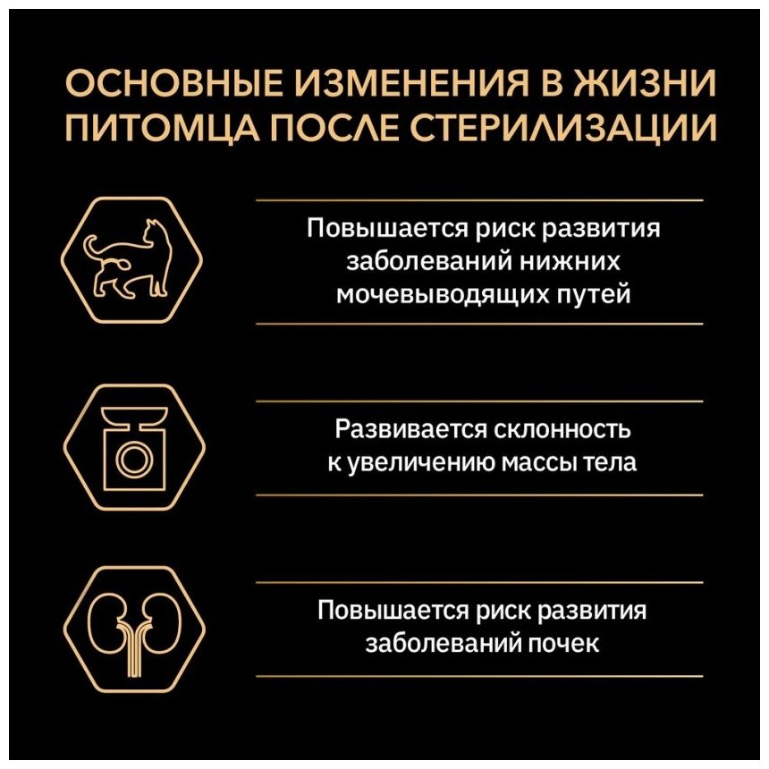 Стерилизация способствует увеличению продолжительности жизни и снижает риски возникновения многих заболеваний. Однако стерилизованные кошки имеют свои особенности: после стерилизации кошка становится менее активной, повышается склонность к набору веса и развитию мочекаменной болезни. Эксперты PRO PLAN разработали влажный корм для стерилизованных кошек с учетом особых потребностей Вашего питомца.