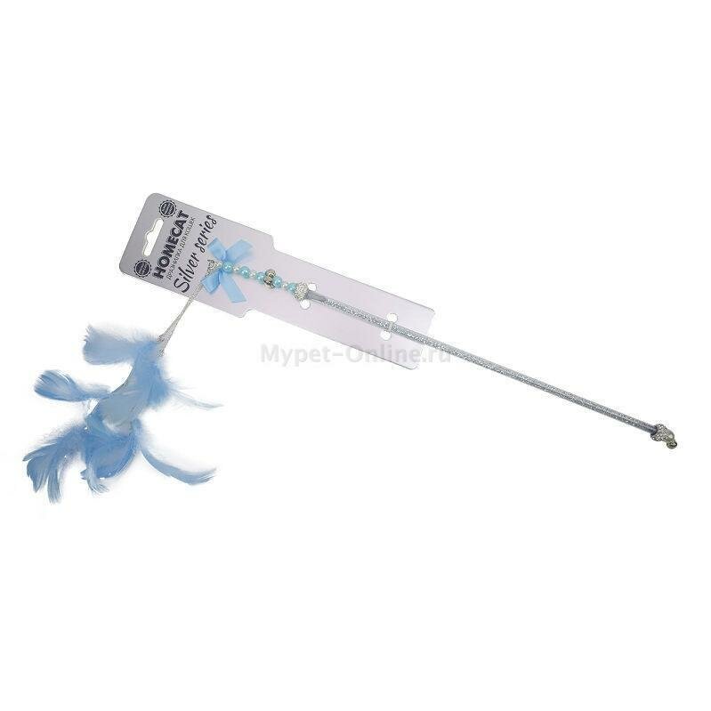 HOMECAT silver series дразнилка для кошек удочка из перьев (42 см. Голубая)