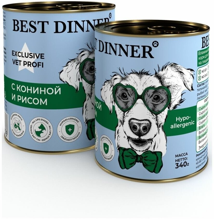 Best Dinner Vet Profi Hypoallergenic консервы для собак профилактика пищевой аллергии (Конина и рис 340 г.) Exclusive Hypoallergenic