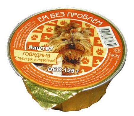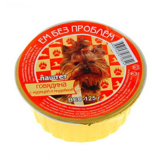 Ем без проблем консервы для собак (паштет) (Говядина курица и индейка 125 г.)