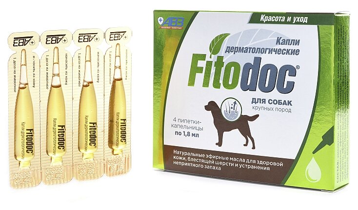 Fitodoc капли дерматологические для крупных пород собак (4 пипетки по 18 мл) (4 пипетки)