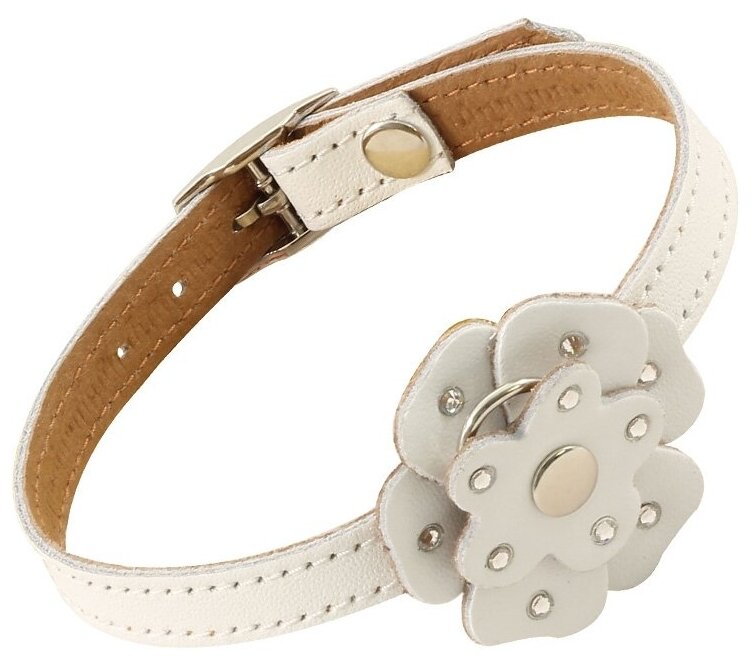 Гамма ошейник-мини кожаный двойной "Цветок" со стразами (L)