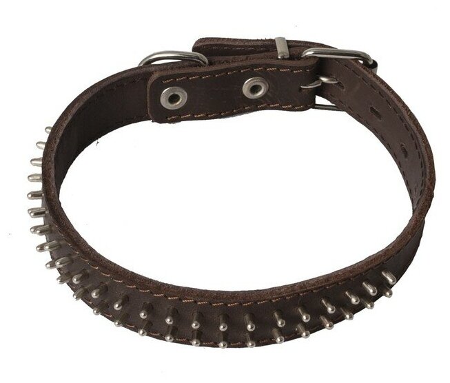 Каскад ошейник кожаный двойной с шипами-ёж (44-53 см.)