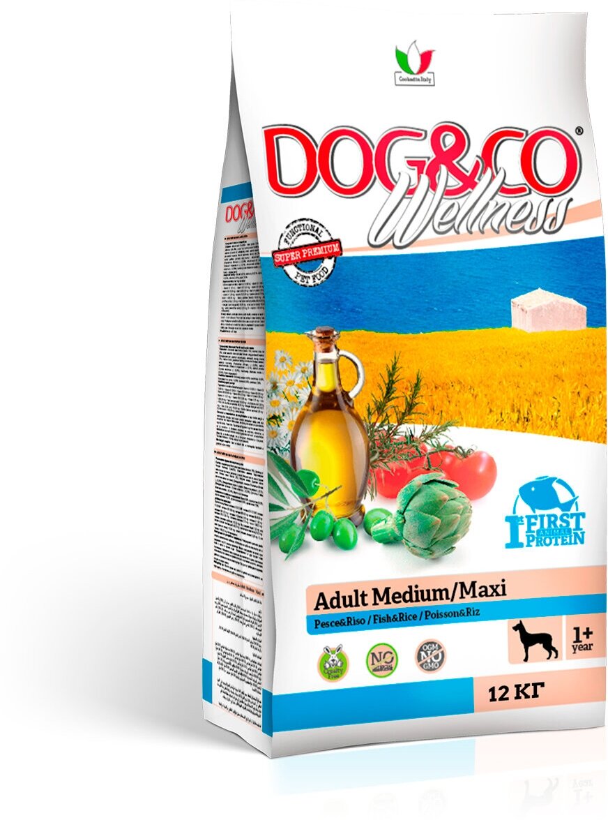 Wellness Dog&Co Adult Medium/Maxi корм для собак средних и крупных пород (Рыба и рис 12 кг.)