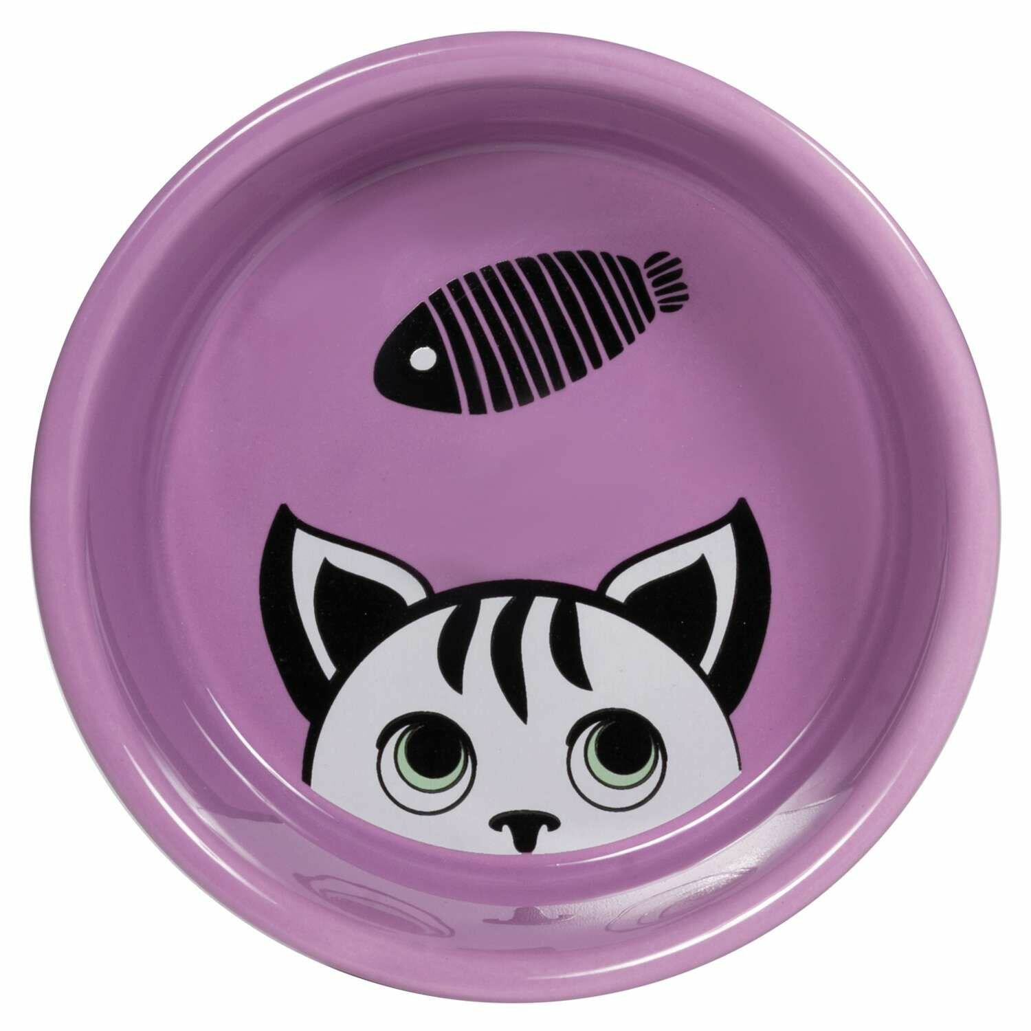 Эта стильная и функциональная миска для кошек выполнена из высококачественной керамики оригинальной расцветки. Такая миска идеально подойдет как для воды, так и для корма любой консистенции. Она комфортна для питомца и легко моется под струей проточной воды с использованием моющих бытовых средств. А выразительный дизайн позволит ей стать украшением любого интерьера. Цвет: фиолетовый. Размер: d дна - 112мм; d верхней части - 125мм; высота - 45мм. Объем 0,25л. Состав: керамика