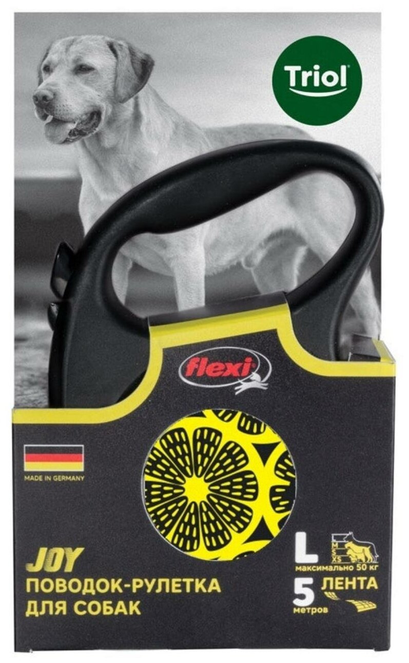 Triol поводок-рулетка Flexi Joy Lemon 5м лента (L)