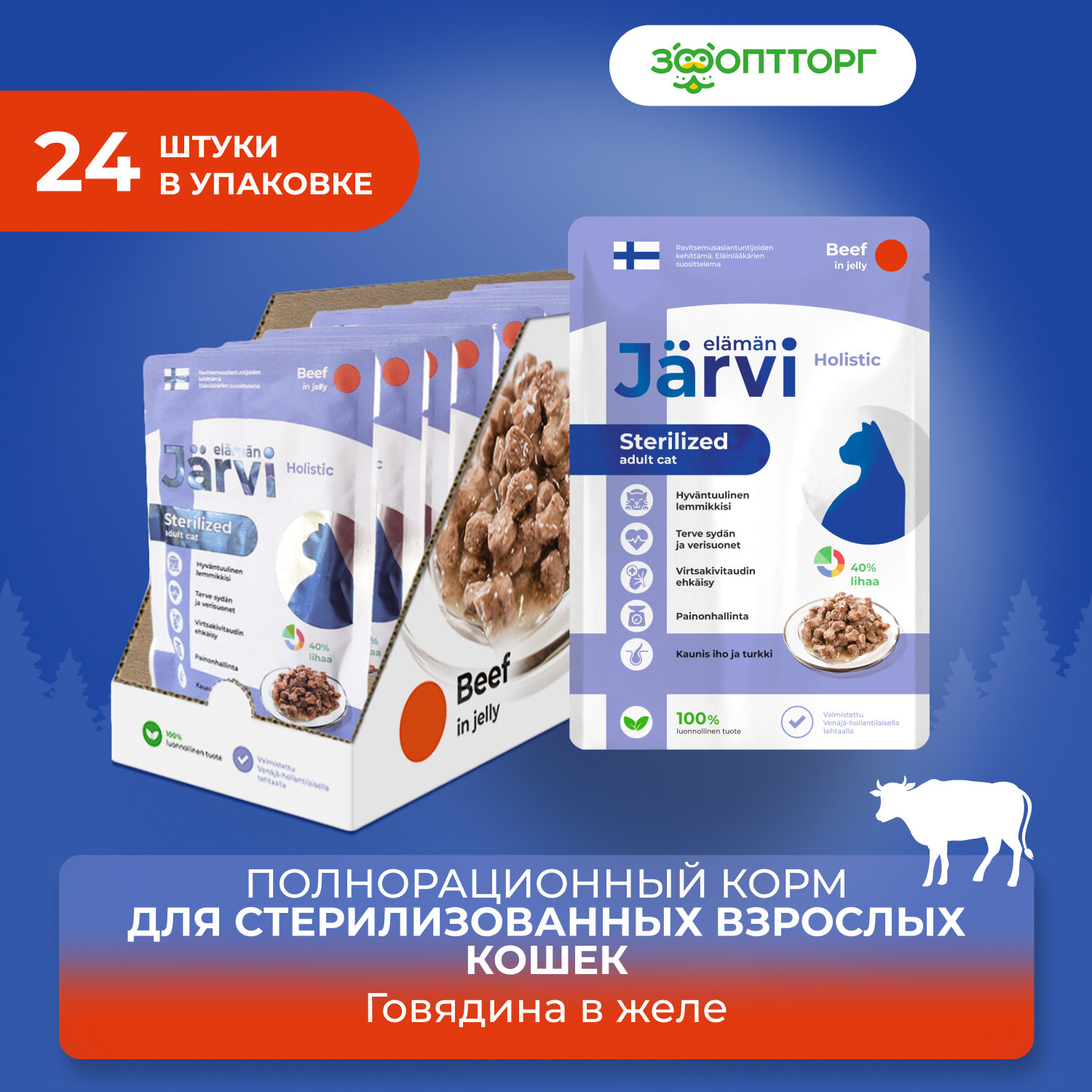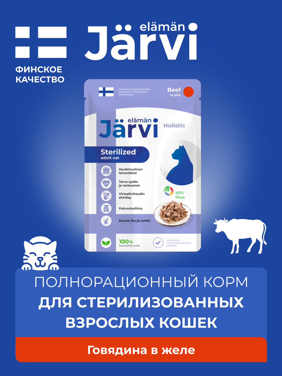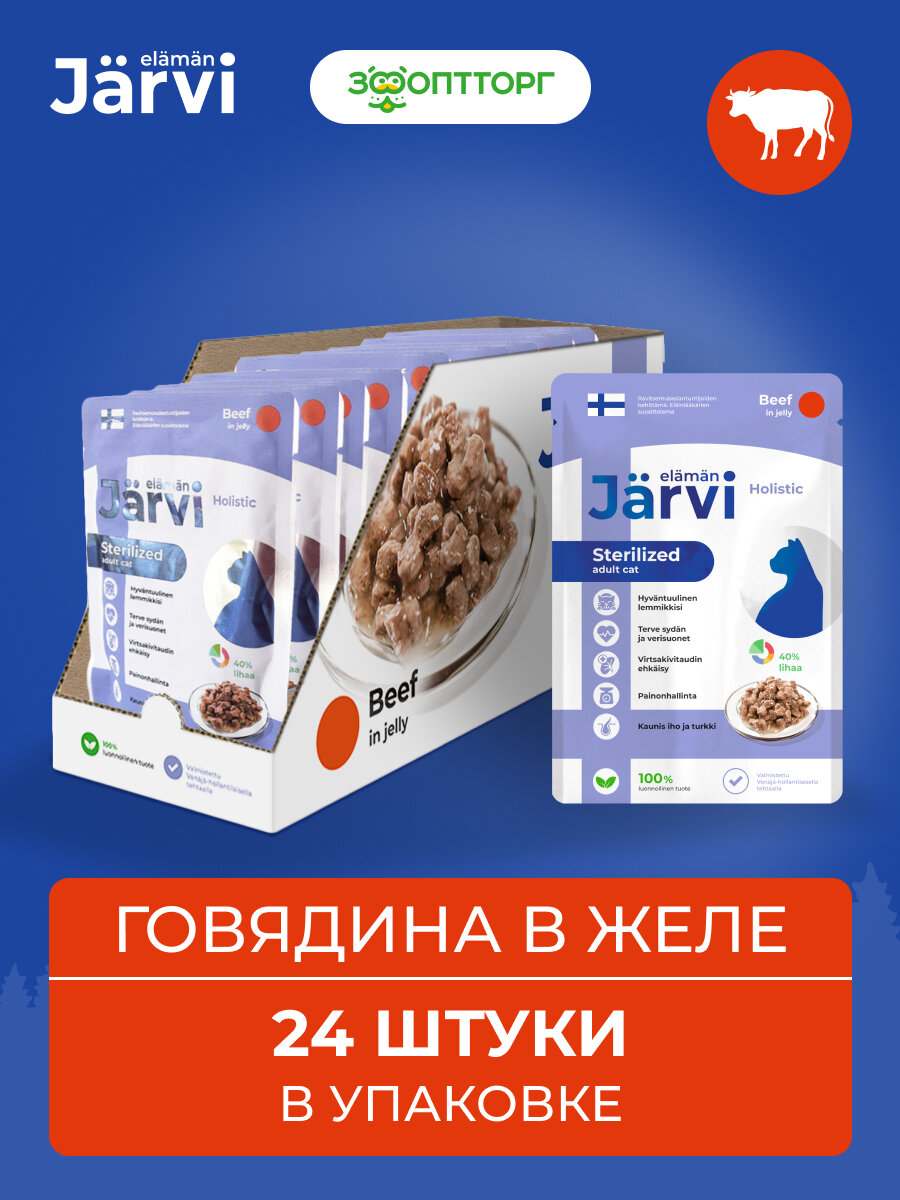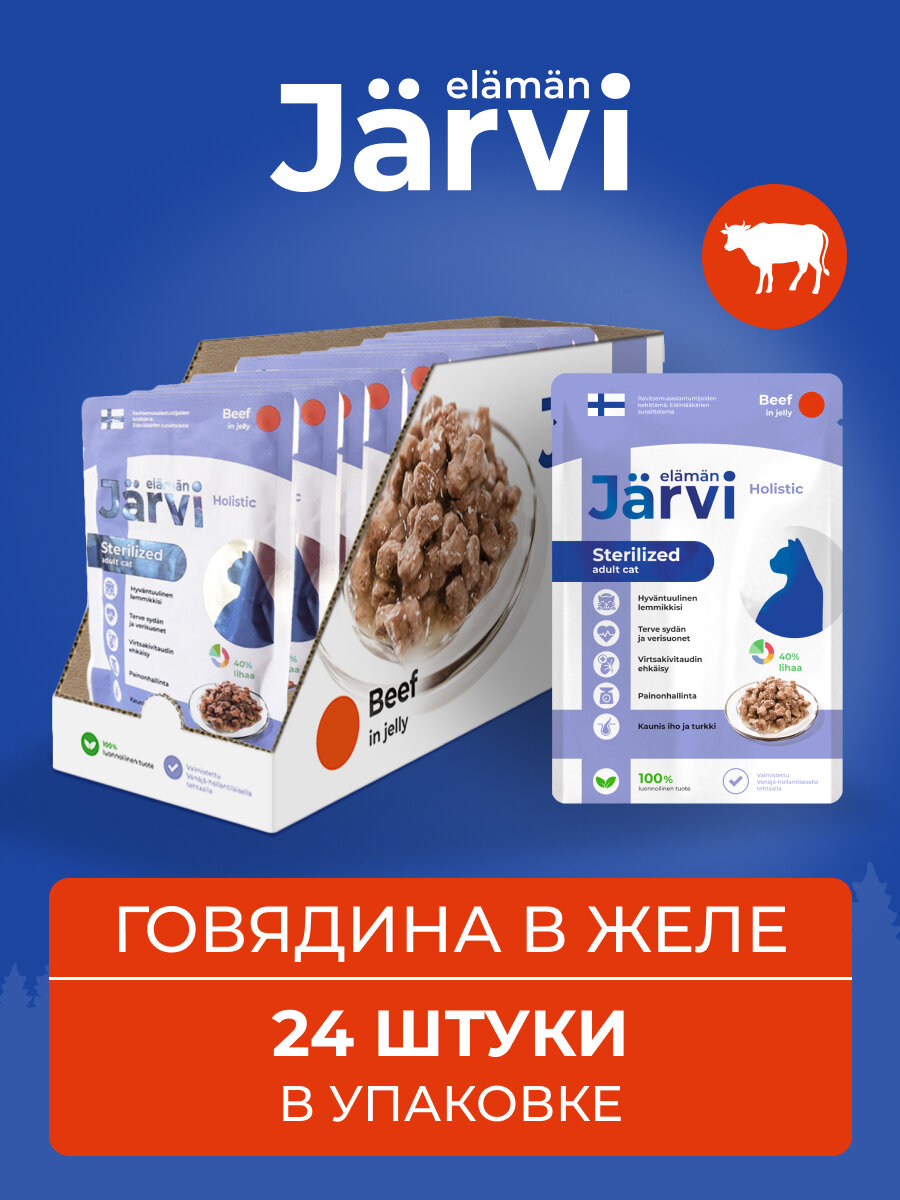 Jarvi пауч для стерилизованных кошек (кусочки в желе) (Говядина 85 г.) Sterilised Adult