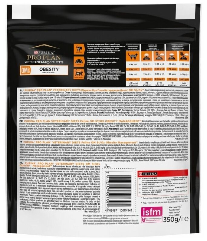 Pro Plan Veterinary Diets OM Obesity Management корм для кошек при ожирении (Диетический 350 г.) Purina Pro Plan Veterinary Diets