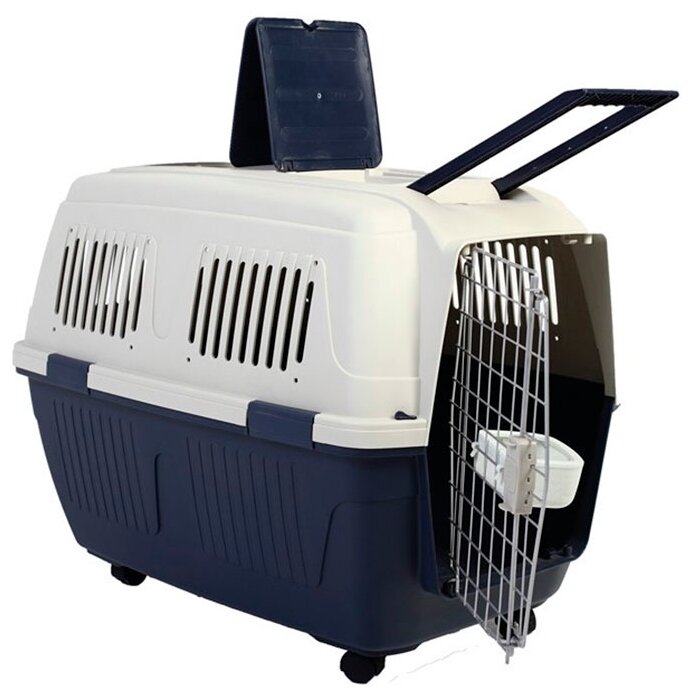 Triol Standard MediumЭта прочная и максимально комфортная для питомца переноска выполнена из высококачественного пластика. Изделие снабжено надежными креплениями и миской, которая крепится на дверь. Металлическая дверца переноски плотно запирается, вентиляционные решетки позволяют питомцу свободно дышать, а крепкая и удобная пластиковая ручка максимально упрощает транспортировку животного. Переноска соответствует требованиям Международной Ассоциации Воздушного Транспорта (IATA) и подходит для авиаперевозок. Подходит для собак весом до 25кг, например, таких пород, как бультерьер, акита, такса, французский бульдог. Цвет: темно-синий, темно-серый. Высота с колесами - 580мм.Размеры: 710х530х520 ммВнимание! Колеса для переноски Triol Standard в комплект поставки не входят и приобретаются отдельно.Материал/состав: металл, пластик