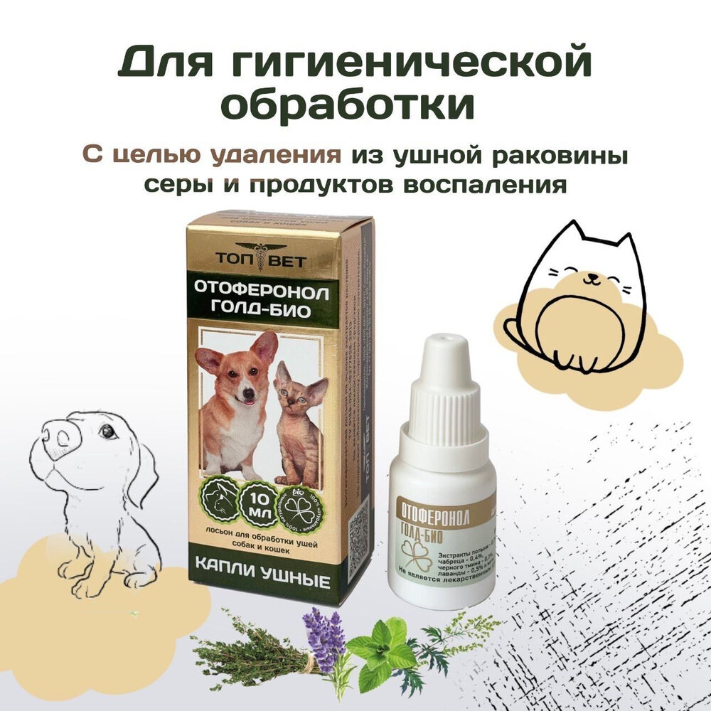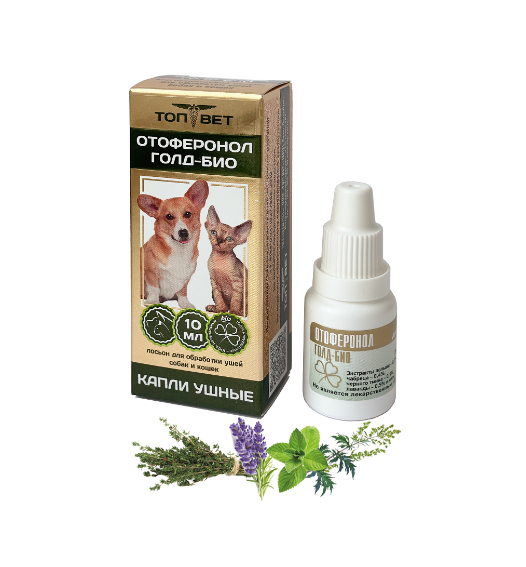 Отоферонол Плюс Био - ушные капли для лечения воспаления ушей у собак и кошек различной этиологии на основе растительных компонентов.