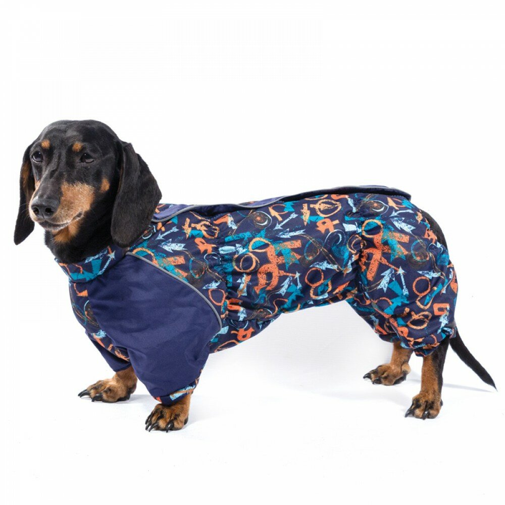 Яркий демисезонный комбинезон с оригинальным принтом изготовлен из мягкого флиса с комбинацией современной курточной ткани мембранны, которая эффективно отталкивает влагу, не пропускает ветер, не боится сильных морозов и ярких солнечных лучей.Комбинезон выполнен с учетом анатомических особенностей тела таксы, имеет специальные вставки из резинок, что позволяет изделию плотно сидеть на собаке, а также декорирован функциональным светоотражающим элементом.Размеры:S - длина по спине: 36 см. М - длина по спине: 41 см. L - длина по спине: 46 см. Цвет изделия на фотографии может отличаться от цвета фактического товара.