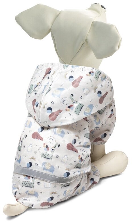 Костюм-дождевик "Сонное царство" - это удобный и функциональный аксессуар для собак, который просто незаменим в дождливую погоду. Изделие защитит шерсть животного от дождя и грязи, а непродуваемая ткань - от сильного ветра. Костюм имеет стильный дизайн, а универсальный фасон не стесняет движений питомца во время прогулки. Особенностью дождевика является светоотражающая лента, идущая по талии изделия, - для повышения безопасности животного на дороге. Дождевик также имеет капюшон и фиксируется при помощи трех заклепок на животе, а на штанинах предусмотрены удобные резинки, препятствующие попаданию грязи и влаги снизу. Длина спины: 300 мм; обхват груди: 420 мм; обхват шеи: 300 мм. Цвет: бежевый.