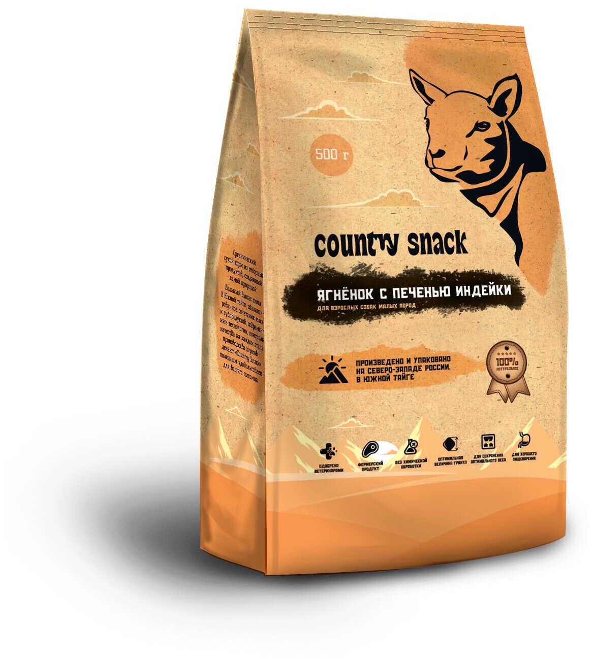 Country snack корм сухой для взрослых собак малых пород (Ягненок с печенью 500 г.) Country snaсk