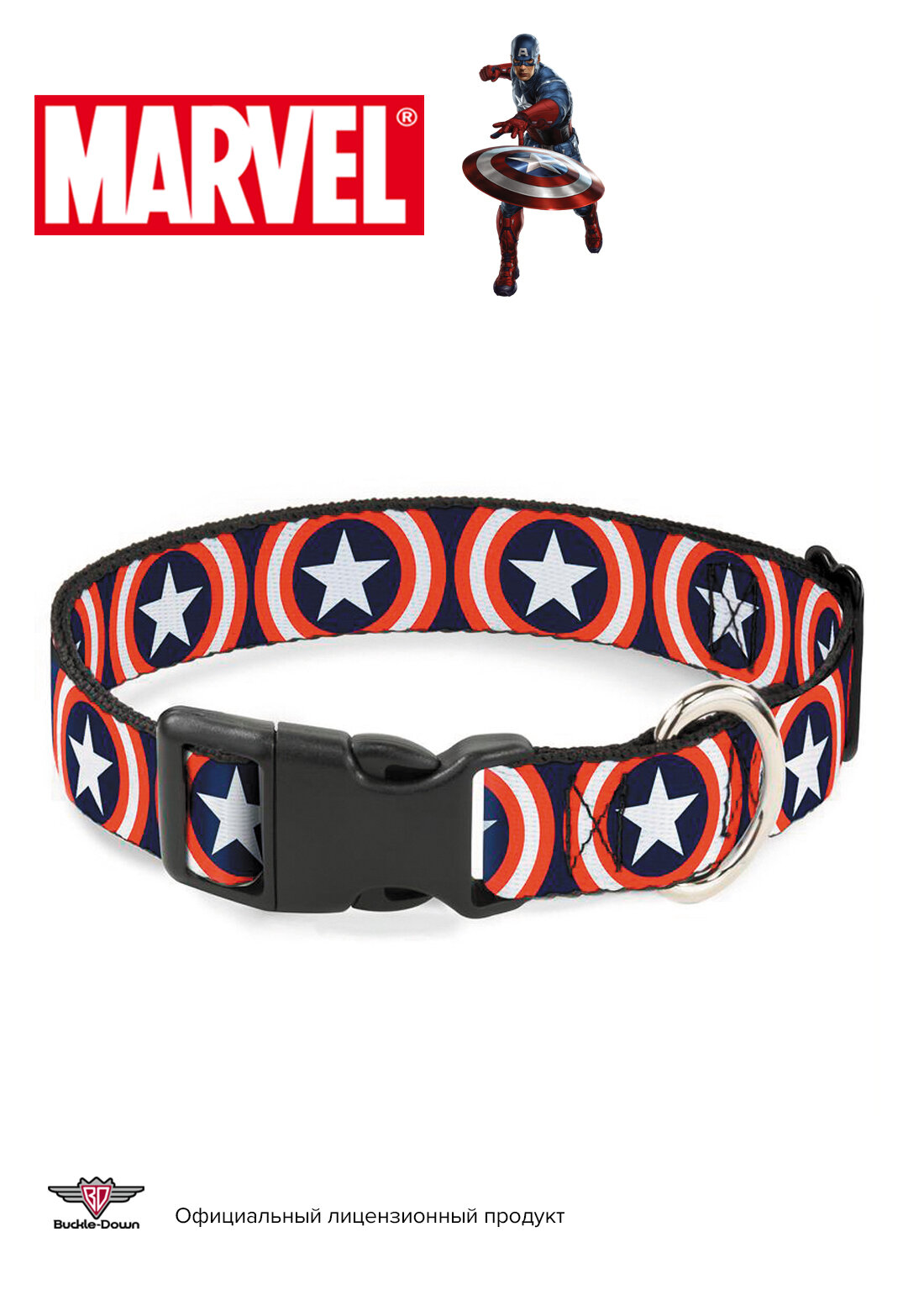 Buckle-Down ошейник "Капитан Америка" с пластиковой застёжкой (38-66 см. Синий)